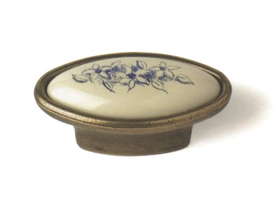 Pomolo Ovale 54 X 30 mm in Acciaio Anticato con Inserto Vern. Avorio e Decoro Blu