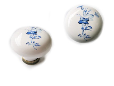 Pomolo Ø 35 mm in Porcellana Bianco Fiore Blu Base Anticato