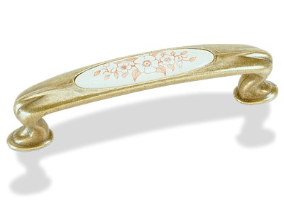 Maniglia Int. 96 mm Anticato Chiaro con Inserto in Porcellana Avorio e Fiore Marrone