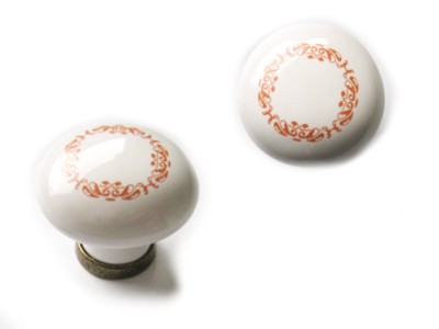 Pomolo Ø 31 mm in Porcellana Bianco Corona Ocra Media Base Anticato