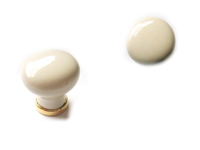 Pomolo Ø 28 mm in Porcellana Avorio Base Oro Lucido