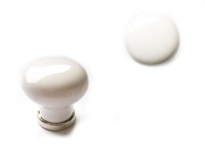 Pomolo Ø 28 mm in Porcellana Bianco Base Nichel Lucido