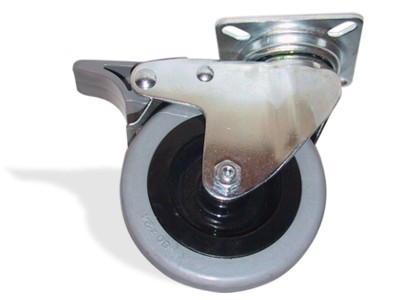 Ruota Girevole 80 X 24 mm con Leva Freno, Forcella, Piastra 60 X 60 mm in Acciaio Zincato e Gomma Grigia