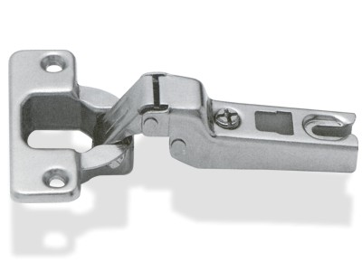 Cerniera per copertura parziale del fianco. Apertura 110°, diametro box Ø 35 mm.