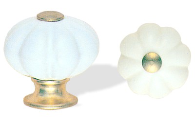 Pomolo Ø 28 mm in Porcellana Bianco Base Oro Lucido