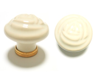 Pomolo Ø 31 mm in Porcellana Avorio con Rilievi Bese Oro Lucido