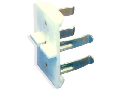 Gancio di fissaggio mm 50 per zoccolo in legno, fissaggio in fresata di 3 mm. Piastra in plastica.