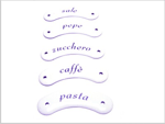 COD. 10-4702 Targhette in Metallo Smaltato Bianco 25 X 90 mm A Mezzaluna con Scritta ZUCCHERO in Blu