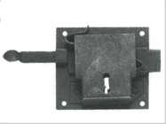 COD. 03-2983 Serratura in Stile da Applicare Alla Sarda Entrata 65 mm DX Con Chiave Maschio e Bocchetta in Acciaio Ferro Antico
