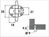 COD. 01-4038 Cerniera in Stile Ø 9 mm con Capitello e Alette Ø 35 mm Fisse in Zama Ottonato