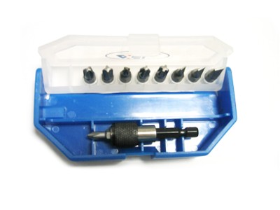 Kit Porta Inserto Composto da 3 Inserti Croce PZ n.1 - 2 - 3 e da 3 Inserti Croce PH n.1 - 2 - 3 e 3 Inserti a Taglio n. 4 - 5.5 - 6.5 e Porta Inserto Magnetico con Sgancio Rapido in Acciaio naturale