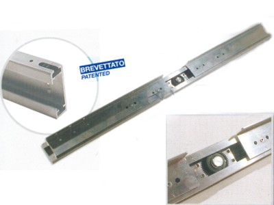 | descirzione: | Coppia Guide da 1150 mm 2 Aletta 400 mm Apertura Centrale 794 mm con Sistema di Rinvio Sincronizzato a Cremagliera in Alluminio per Tavolo |