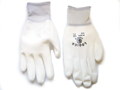 Guanto in Nylon e Poliuretano Super Sensibile con Polso in Maglia e Dorso Areato Colore Bianco Taglia M