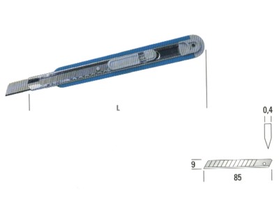 | descirzione: | Cutter Piccolo Guida Lama in Metallica, 2 Lame di Ricambio Incorporato, Bloccaggio Automatico, Desing Ergonomico